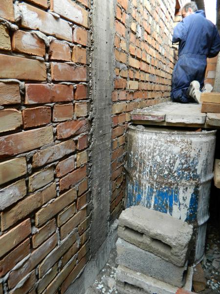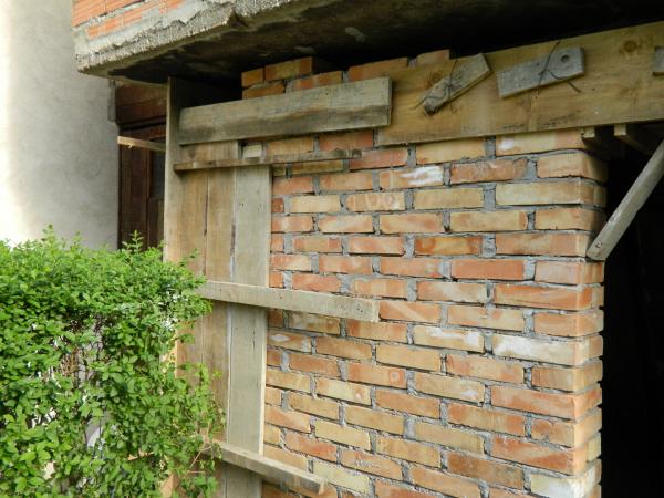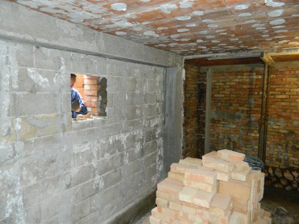 Vec postojeci zid od betonskog bloka smo ojacali sa duplim zidom od pune cigle i napravili rupu za prozor, koji ce da sluzi za provetravanje i da unese malo dnevne svetlosti :)