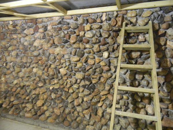 Poceli smo zidanje prvog kamenog zida u live room-u.