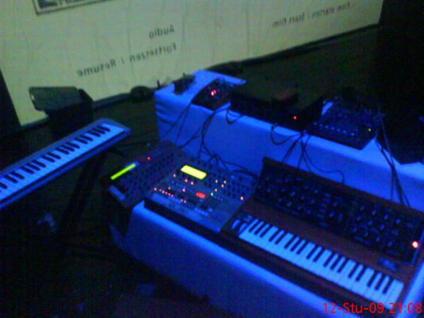 nije neka fotka, okinuo sam na brzaka prije nastupa s mobitelom.. ispred se vidi platno na kojem je projekcija, a mi smo skriveni iza. improvizirali smo na poznati dokumentarni film iz 1927."Berlin: Die Sinfonie der Gro?stadt" Attachment 6983 Attachment 6984 http://georgneu.files.wordpress.com/...pg?w=208&h=300 uspio sam snimit neki usrani mono izlaz iz razglasa, pa sam digao par zanimljivijih isječaka na svoj web. koristim waldorf xt kroz moog phaser, boss dm300 delay, minimoog i rs7000 sampler. kolega Žac svira klarinet i microKORG, Mario theremin, i Ana citru/diktafon/perkusije. http://www.babic.com/dada/Dada_Jihad...ach_Berlin.mp3 http://www.babic.com/dada/Dada_Jihad...he_Station.mp3 http://www.babic.com/dada/Dada_Jihad...e_Insomnia.mp3 http://www.babic.com/dada/Dada_Jihad...er_Zukunft.mp3 |