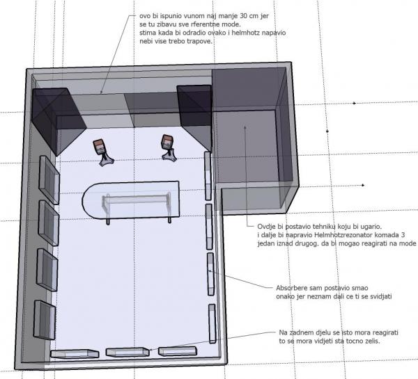 Glavna idea je da se postavio u onoj maloj prostoriji Tehnika i Helmhotz koji je jako efikasan za niske frekvenvije do neki 100 Hz.