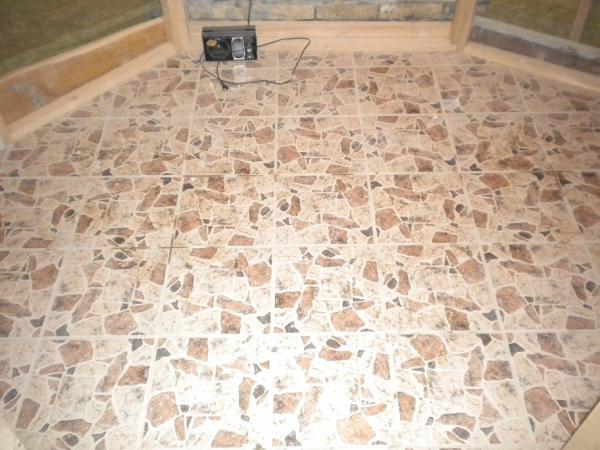 Pod u vocal booth-u.Uradjene su plocice,mada sam hteo parket, ali....posto ionako preko bilo cega ide obavezan tepih jer pevaci lupkaju nogama i rade tako neke stvari....svejedno je u sustini.Parket ce ici u reziju i drum room.