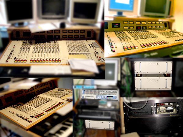 Evo malo detaljnijih fotki Pacific Research/Harrison miksera i HD systema ADX8 iste firme sa plavo-belim kontrolerom (za software) i daljinskim na desnoj sekciji miksera (za Workstation)... Mikser ima 4 kanala (levo) sa Mic Preampima i EQ sekcijom, 10 stereo kanala sa EQom, milion routing opcija, zatim, 8 DIGITALNIH kanala desno (sa svim kontrolama za DAW) i Control Room sekciju skroz desno, opet, sa gomilom AUX opcija, routingom i talkbackom... Skroz levo je MASTER Fader i master sekcija... Tu su i merenja za sve sekcije miksera, kao i timeri, korisni za broadcasting! Nekoliko napajanja, 2 Pacific rack uredjaja (crna) za HD Recording i Editing, kontroler za iste i ,naravno, MIKSER! PowerMac kontrolise ceo ovaj sistem, i njega smo dobili... Pa, eto... Iako nikad nismo hteli Apple, sad ga imamo. PC ne moze da radi sa ovim sistemom... Naravno, Apple polu-praistoriju.