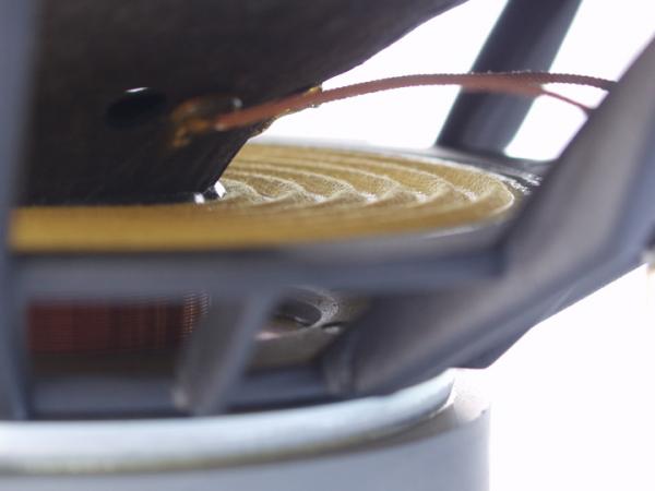 Metalni tweeteri nemaju problem sa dome (kalota) delom, ali im je vesanje ipak od impregniranog tekstila, najcesce... te se i oni moraju razradjivati. Ostali, tekstilni tweeteri se moraju razradjivati. Za ribone mislim da ne mora razradjivanje, ako neko zna bolje nek me ispravi. Polipropilenske membrane ne trebaju razradjivanje ali kao sto sam rekao postoji vesanje... Evo da vidite na koje vesanje mislim (slika je u prilogu): Ispod membrane zvucnika koja moze biti od materijala koji se ne treba razradjivati, postoji takozvani "spider" odnosno vesanje koje centrira kalem u linearnom motoru zvucnika. Moze se videti kao zuti talasasti tekstil, koji je obavezno impregniran da bi mu se kontrolisala svojstva (elasticnost, na primer). Ispod tog tekstila se moze videti kalem sa namotajima, a ispod njega je magnet motora. Iznad je membrana, a one zice su izvodi namotaja, gde se zvucnik prikljucuje. Vidi se i ram (basket) koji drzi sve mehanicki na okupu. Svi od impregniranog tekstila koji se savijaju ili uvrcu se moraju razraditi vremenom.