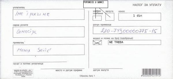 ako je moguce, daj nam podatke za placanje opstom uplatnicom - mislim da bi tako svima bilo lakse